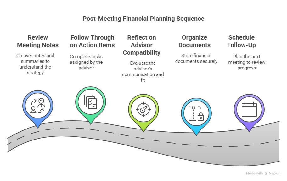 Taking action after the meeting with your financial advisor ensures your time and preparation translate into measurable progress—and that you stay in control of your financial journey.